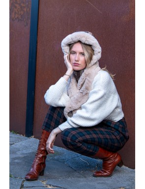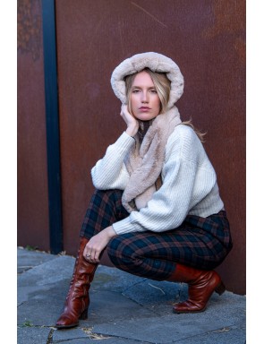 Our beautiful faux fur hood in a checked fabric, combines warmth and vintage style, offering a must-have for those chilly days. Handcrafted in our French workshop in Templeuve, each piece is unique and a testament to our artisanal expertise. With carefully selected retro buttons, this practical and elegant hooded balaclava guarantees comfort and a trendy look to face winter in style.