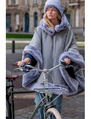 Let yourself be charmed by our cape, trimmed with faux-fur, all in a 100% cruelty-free approach, handmade in Templeuve, France. This cape is the perfect choice to combine warmth and elegance this winter.