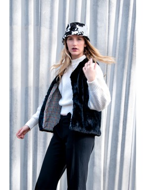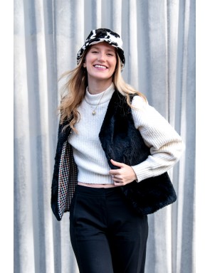 Adoptez ce gilet sans manche en fausse fourrure noire 100% cruelty free et made in France. Idéal pour la mi- saison, au dessus d'un gros pull pour un look décontracté !